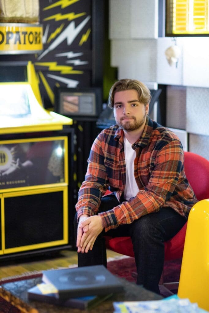 The bold yellow and black color scheme of Third Man Records created striking visuals, making Kolin stand out in every shot. We played with different poses and angles to capture the essence of this music-lover’s paradise.